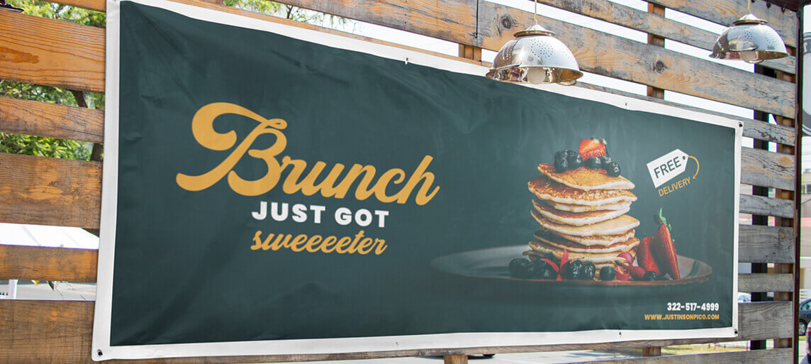 For starters, you’ll want some restaurant print ideas to really grab attention from afar and promote your restaurant. This can be as simple as a vinyl banner spread across the front window of your restaurant, beckoning customers to come in and try your signature dishes! Not sure what size to get to send the right message? Follow our Standard Vinyl Banner Sizes guide! Sidewalk signs are handy too. Why rely on customers turning their heads to see your sign when you can give them a 360-degree view with a deluxe A-frame?
